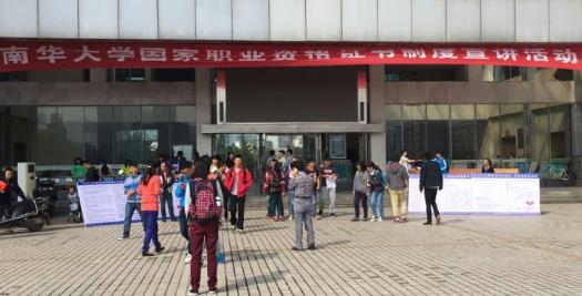 为大力推行国家职业资格证书制度,加快技能人才队伍建设,更好地服务我校学生就业和经济社会发展,贯彻执行湖南省人力资源和社会保障厅职业技能鉴定中心下发的《关于开展2015年国家职业资格证书制度宣讲活动的通知》(湘人社鉴函〔2015〕5号)文件,2015年10月11日上午继续教育学院在AG网页版第1教学楼前坪举办了国家职业资格证书制度宣讲活动。活动通过在校园布置宣传横幅、摆放展架、发放相关宣传资料、现场问卷调查方式进行,让学生更多的了解了国家职业资格制度。